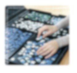 Puslespilsmåtte med opbevaring til 300-1000 brikker er et smart produkt med fem sektioner at opbevare puslespilsbrikkerne i. Det inkluderer også en puslespilsmåtte til at bygge puslespil med 300-1000 brikker på.