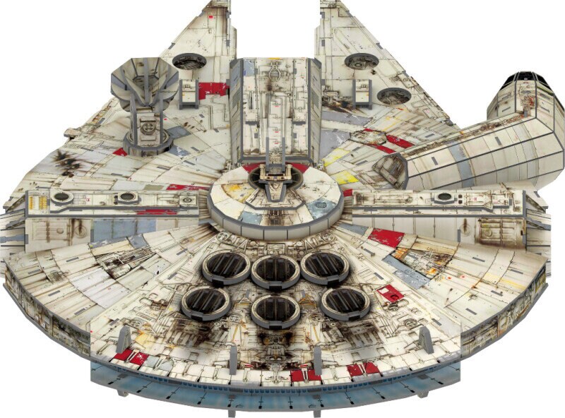 3D-puslespil, der skildrer det populære Millennium Falcon-skib fra Star Wars.