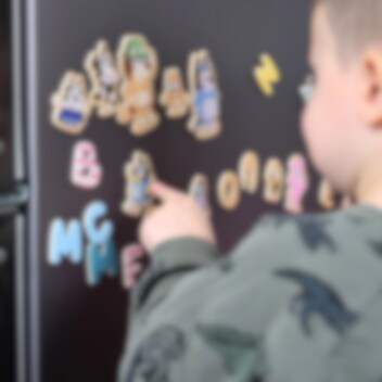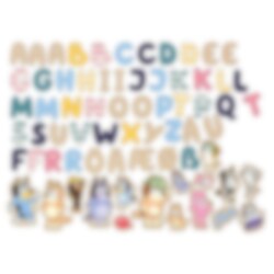 Lad børnene udforske alfabetets verden sammen med Bluey og hendes venner. Dette farverige sæt indeholder 53 magnetiske bogstaver fra både det nordiske og tyske alfabet samt 17 figurer fra Blueys univers. Alle dele er lavet af træ og har magnetisk bagside, så de nemt kan bruges på køleskab og andre metaloverflader.