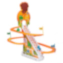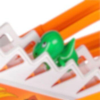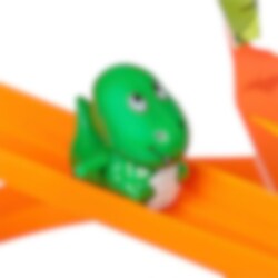 Når du tænder spillet, begynder tre søde små dinosaurer at gå op ad den stejle vulkantrappe og derefter ned ad den snoede rutsjebane.