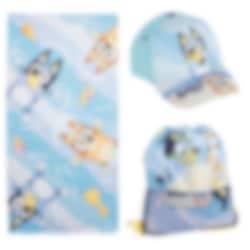 Et perfekt sæt til alle Bluey-fans – klar til sommerens sjov og eventyr! Sættet indeholder et blødt og absorberende håndklæde, der er perfekt efter en dukkert, en smart kasket der beskytter mod solen og en praktisk gymnastikpose med plads til alt det nødvendige for en dag fuld af leg.