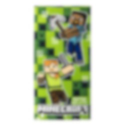 Seje badehåndklæde med motiv af Steve og Alex fra Minecraft, perfekt til stranden eller poolen. Håndklædet er officielt licenseret og fremstillet af 100 % hurtigtørrende polyester.