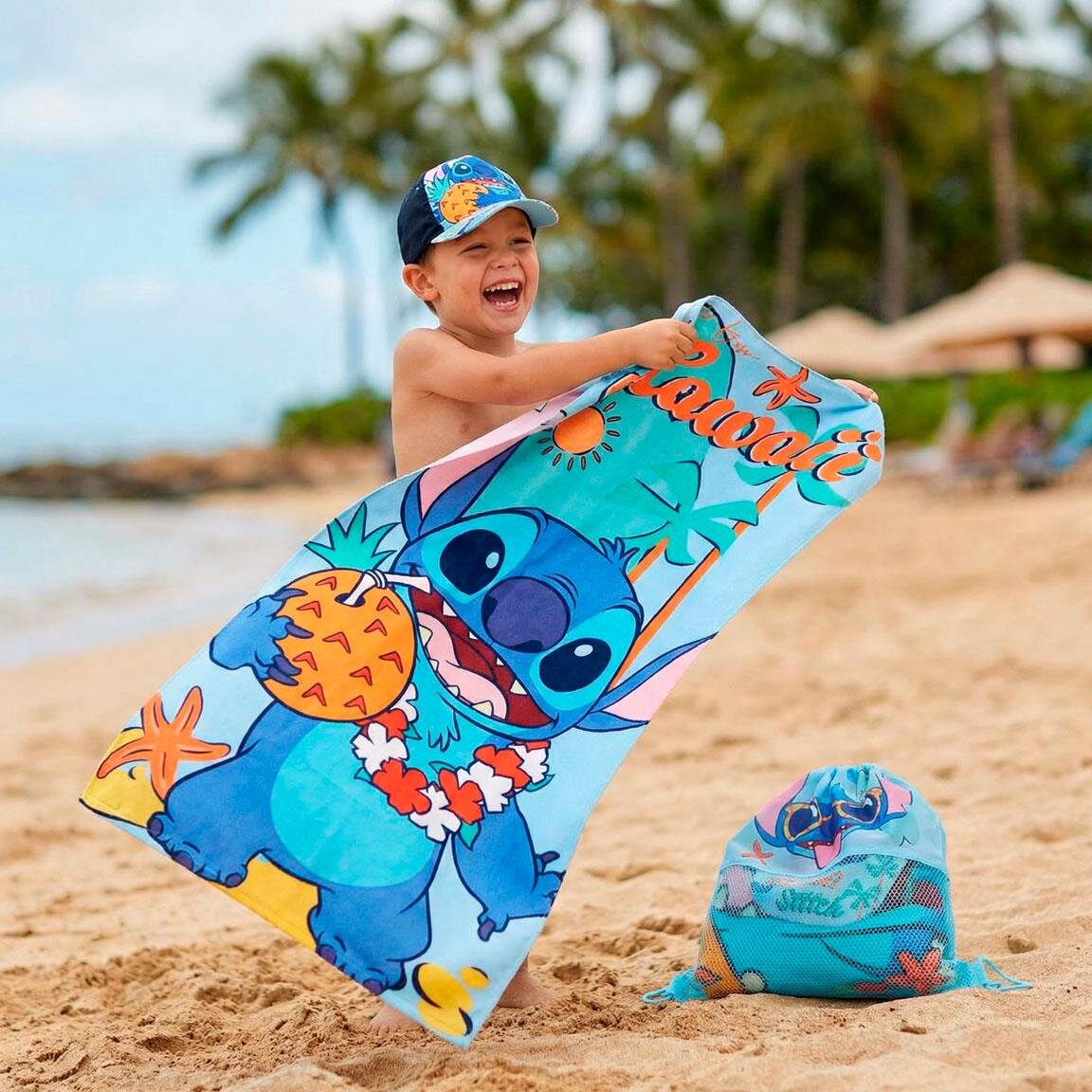 Et farverigt og praktisk sæt i Stitch-tema, der indeholder håndklæde, kasket og gymnastikpose, perfekt til stranden, poolen og sommerens mange eventyr. De legesyge motiver giver en dejlig fornemmelse af sol, ferie og skøjer.