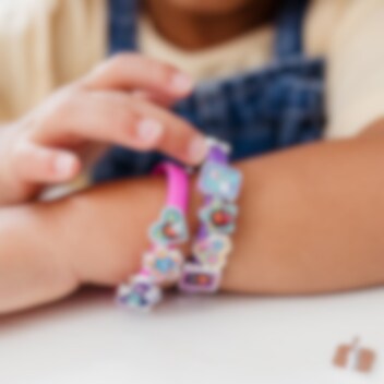 Gør-det-selv armbånd – et herligt pysselsæt, der lader børnene skabe deres egne unikke armbånd med deres yndlingskarakterer. Sættet indeholder 3 armbånd og 18 farverige charms, som børnene kan trække på for at skabe personlige smykker.