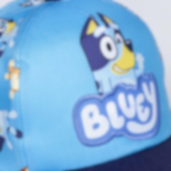 Smuk kasket til børn i blå farvenuancer med den søde hund Bluey på. Kasketten er lavet af 100% polyester. Kasketten har en omkreds på 53 cm og kan justeres bagpå, hvilket gør, at den som regel passer til børn i alderen ca. 4 til 6 år.