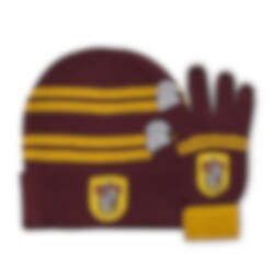 Meget flot hue, med tilhørende handsker, i høj kvalitet i Gryffindors farver fra Harry Potter. Huen og handskerne er lavet af 100% akryl og er i børnestørrelse. Velegnet til børn mellem 8-10 år. Dette er et officielt licenseret produkt fra producenten Cinereplicas.