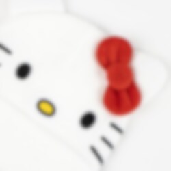 Hold børnene varme og søde på kolde dage med dette fine sæt med hue og fingervanter fra Hello Kitty! Den hvide hue har strikkede ører og en rød sløjfe, mens de røde vanter har ribkanter for en behagelig pasform. Et charmerende og praktisk sæt, der hurtigt bliver en favorit blandt små Hello Kitty-fans.