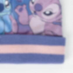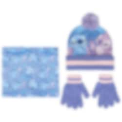 Dette fine sæt med hue, halsedisse og handsker er perfekt til kolde dage. Huen har et sødt motiv af Stitch og Angel og er pyntet med en lilla kvast på toppen. Halsedissen har et sjovt Stitch-mønster, og de matchende handsker med ribkanter sikrer en god pasform. Sættet er lavet af blødt og strækbart materiale, som holder barnet varmt og komfortabelt under leg i kulden.