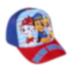 Smuk kasket i røde og blå nuancer med motiver af de populære redningshunde Marshall, Chase og Rubble fra Paw Patrol. Kasketten er lavet af 65% bomuld og 35% polyester.