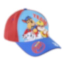 Flot kasket i blå og røde nuancer med motiver af de populære redningshunde Marshall, Chase og Rubble fra Paw Patrol. Kasketten er lavet af 65% bomuld og 35% polyester.