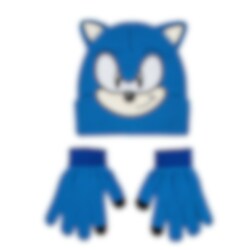 Giv børnenes vinterlook fart og energi med dette Sonic-sæt! Den blå hue har Sonics ansigt med spidse ører, og de matchende handsker har sorte fingerspidser. Perfekt til små fans af den klassiske spilhelt.