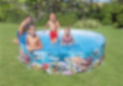 Snapset børnepool fra Intex med flotte havmotiver gør det nemmere at hoppe i vandet med vennerne. Det eneste du skal gøre er at rulle poolen ud, fylde den med vand og voila, den er klar. Fra 3 år under opsyn af en voksen