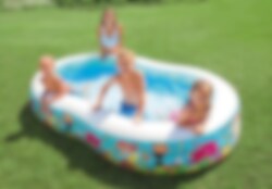 Intex børnepool med sjove snorklemotiver bliver den ultimative badeoplevelsen i haven. Poolen har en størrelse på 262 x 160 x 46 cm og rummer 700 liter. Fra 3 år under opsyn af en voksen.