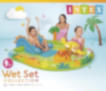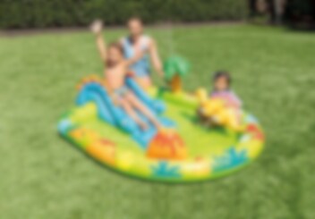 Legepool fra Intex med sjove dinosaur motiver, der vil være det ultimative legetøjet i sommer. Her kan du og dine venner suse ned ad rutsjebanen, mens den vandsprøjtede palmene er på for en sjovere oplevelse. Den indbyggede vandsprøjten tilsluttes nemt til vandslangen. Fra 2 år under opsyn af en voksen