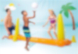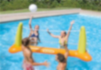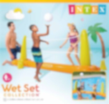 Intex volleyballsættet til poolen gør badingen i poolen til en sjov aktivitet. Pakken inkluderer net, oppusteligt stativ, bold og ankertasker med vægt.