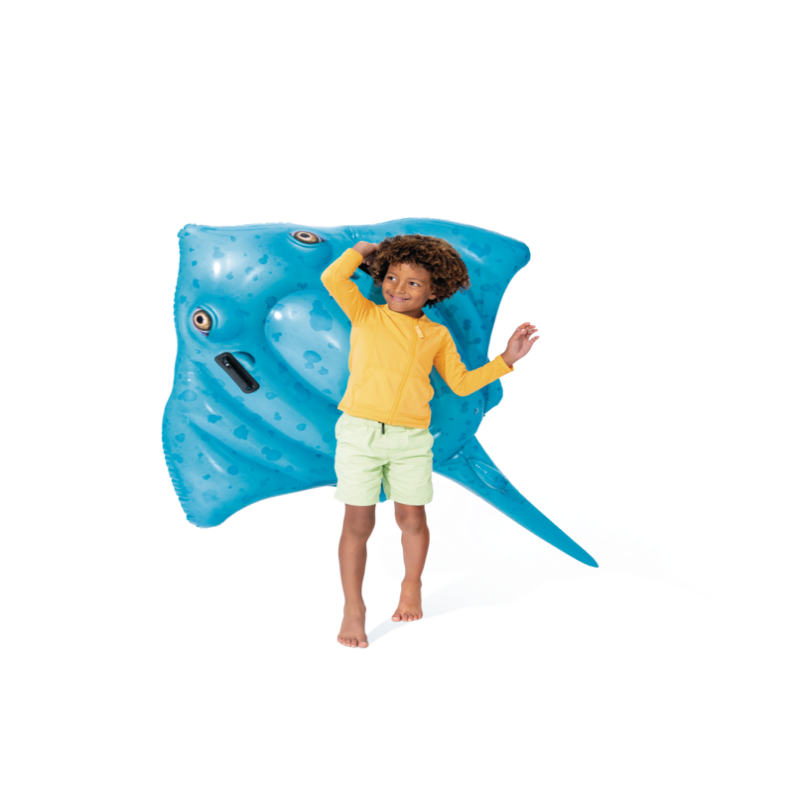 Nu er det tid til at tage på eventyr med denne Intex stingray ride-on bade madras. Glæd barnet med denne sjove oppustelige badering med to kraftige håndtag, som barnet kan holde fast i, mens det cruiser rundt i poolen. Rokken er 185 x 145 cm og med en vægtgrænse på 40 kg. Der er inkluderet 1 reparationslap. Fra 3 år under tilsyn af en voksen.