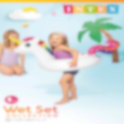 Lav et sprudlende indtryk med denne charmerende enhjørning-badering. Baderingen er den perfekte måde for børnene at nyde i vandet, når det er varmt. Baderingen er 107 x 58 cm stor og er velegnet til børn mellem 3 og 6 år.