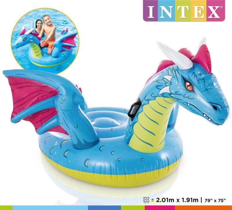 Ride-On Drage fra Intex gør det nemt for dem, der vil imponere alle i poolen. Dragen har to luftkamre og er udstyret med 2 stk. håndtag. Fra 3 år under opsyn af en voksen