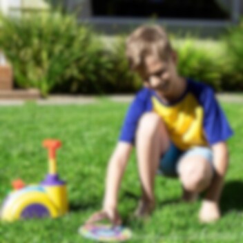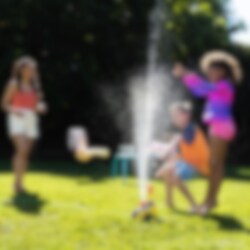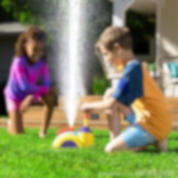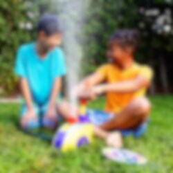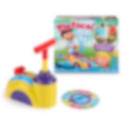 Drej på hjulet og din skæbne afgøres. Tallet, som pile peker mod, er antallet af gange, du skal pumpe. Man ved aldrig, hvornår vandet sprøjter op. For hver gang du pumper, øges trykket, og når det endelig frigives, bliver du oversprøjtet med vand. Pumpen skal tilsluttes direkte til en vandslange. Fra 6 år.