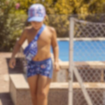 Kasketten er lavet i en blød og slidstærk bomulds- og polyestermix. Den har en omkreds på ca. 53 cm og er justerbar bagpå, så den passer børn i alderen ca. 4 til 6 år.