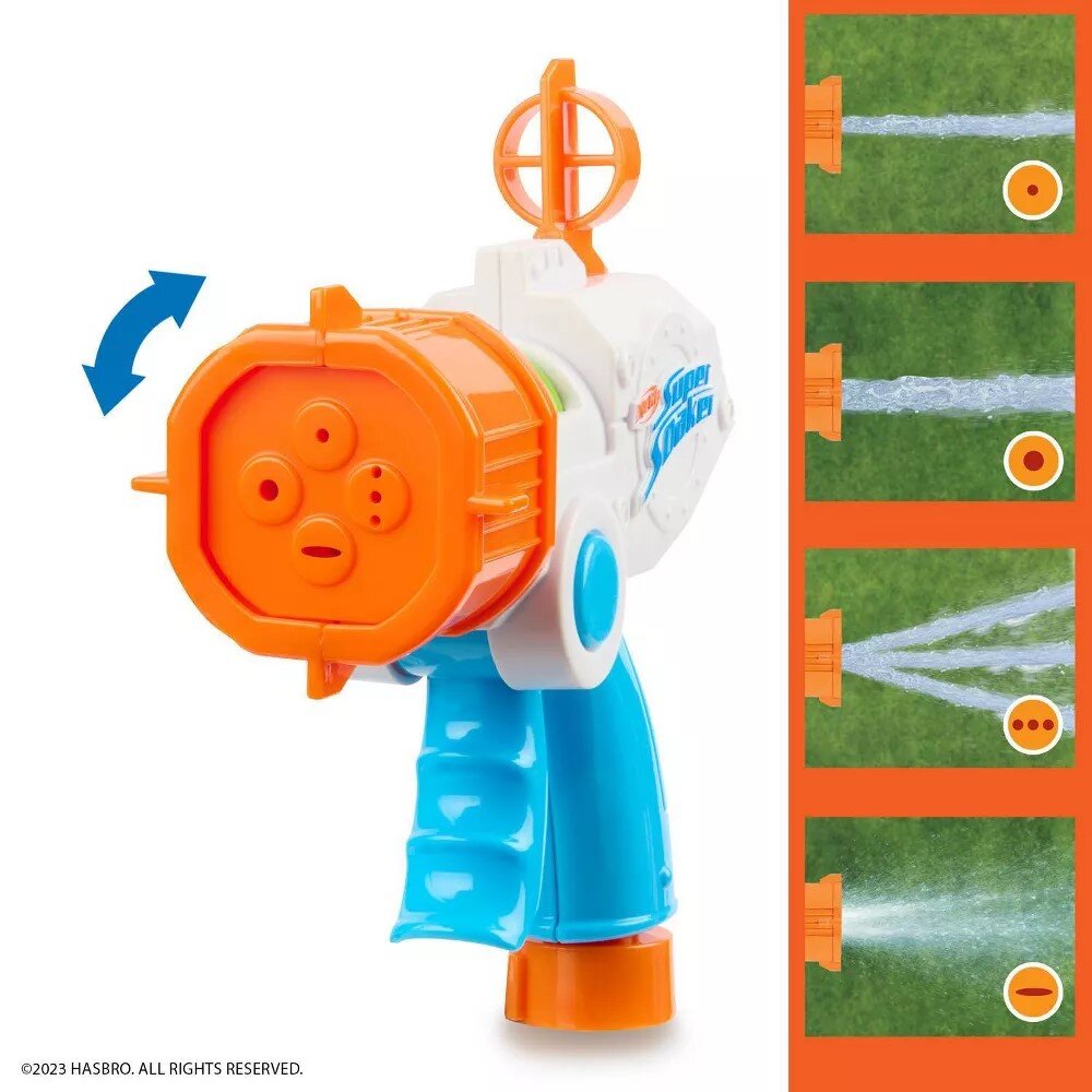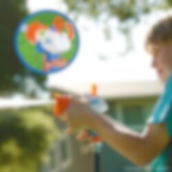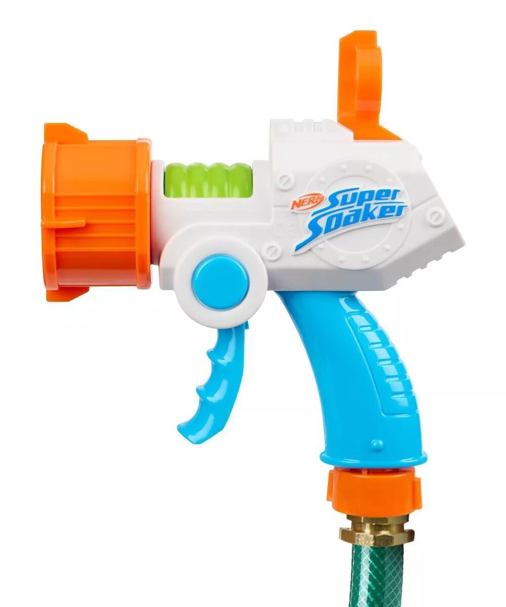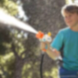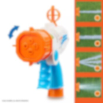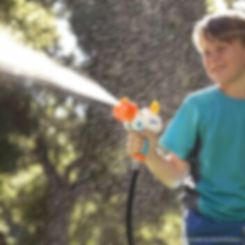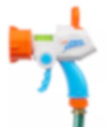 Tag sigte og gør dine modstandere gennemblødte med denne vandpistol. Skuddet drives af vandet fra din haveslange og har en rækkevidde på op til 4-5 meter. Du kan vælge mellem 4 forskellige mundstykker.