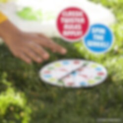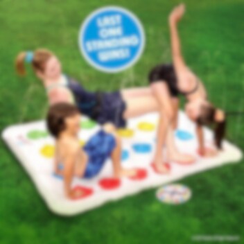 Pakken indeholder en Twister måtte med en størrelse på 173 x 132 cm, en vandtæt spinner og spilleregler. Fra 6 år.