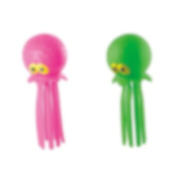 Denne blæksprutte suger vand op og sprøjter det ud gennem huller i hovedet, når du klemmer eller kaster den. Ideel til udendørs leg. De sælges enkeltvis og usorteret og er cirka 15 cm høje.
