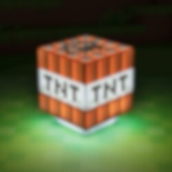 Sej lampe, der forestiller en klassisk TNT-bombe fra spillet, Minecraft. En sjov gave til alle, der elsker Minecraft, og som samler på lamper.