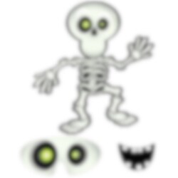 Sjovt festspil for 2-12 spillere. Her skal du og dine medspillere forsøge at ramme skelettets leende mund. Den som kommer nærmest vinder. Pakken indeholder et skelet, som du kan klistre fast på væggen, et bind til at putte for øjnene og 12 stk. klistermærker (nummererede munde).