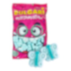 Ingredienser: Sukker, glukose-fruktosesirup, vand, geleringsmiddel: gelatine, aromaer, farve: E133; majsstivelse