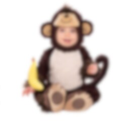 Monkey Around kostume indeholder en jumpsuit, en hætte med ører og en banan rangle, som du kan tage om håndledet. Dragten er lavet af 100% polyester og fås i en størrelse, der passer til børn, der er mellem 12-18 måneder gamle.