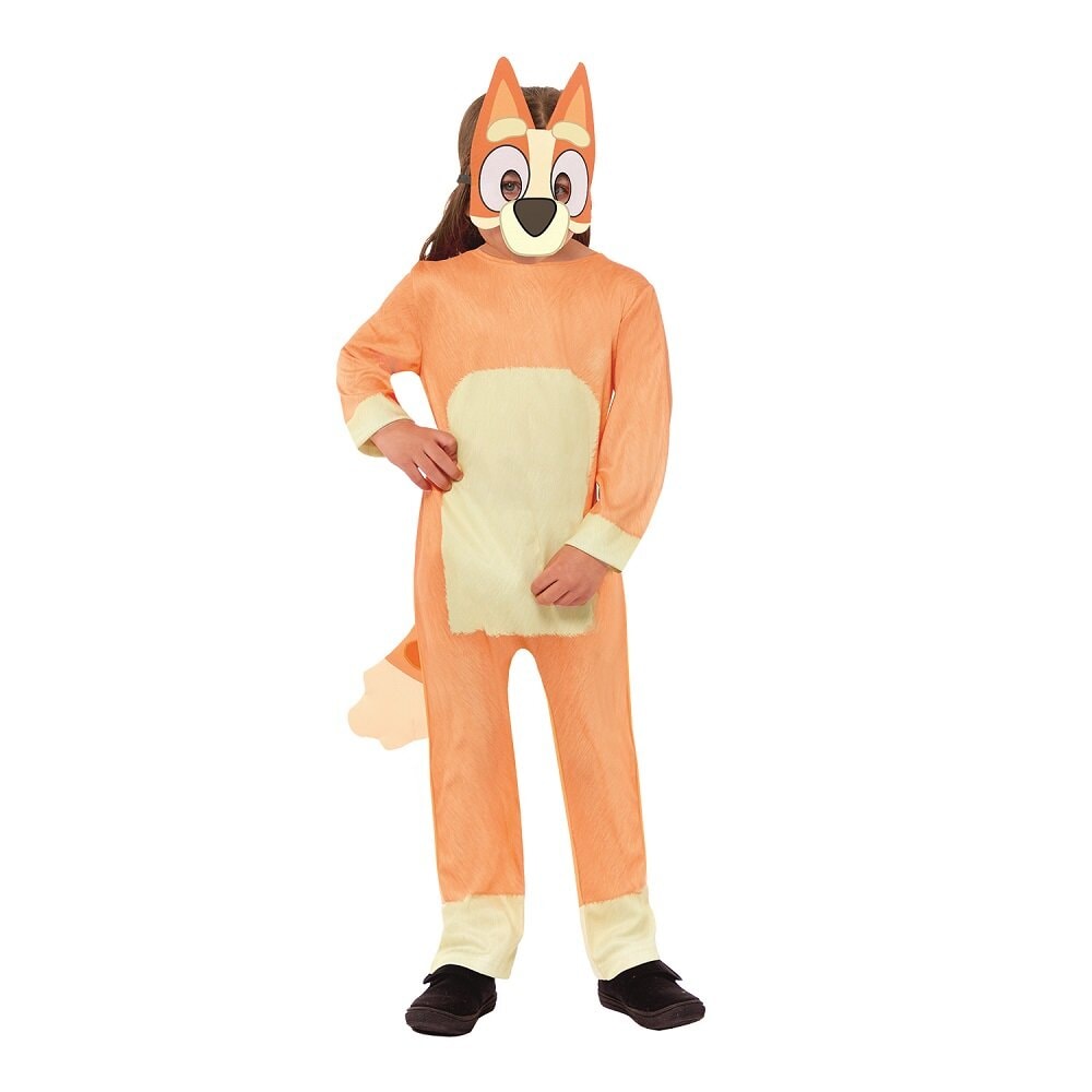 Tag glæden og eventyret fra den populære serie Bluey med til dit barns udklædning med denne vidunderlige Bingo-kostume! Denne kostume inkluderer en one piece-kostume med Bingo's karakteristiske udseende og en tilhørende hale, samt en blød filtmaske. Lavet af 100 % polyester.