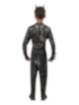 Batman The Movie udklædningskostumet inkluderer et jumpsuit med fede detaljer og med tilhørende kappe og helmaske. Dragten er lavet af 100% polyester og fås i to størrelser, der passer til børn mellem 5 og 8 år. Dette er et officielt licenseret DC Comics-produkt.