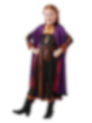 Frost 2 Anna kostume indeholder en smuk kjole i sort og lilla med en matchende kappe. Udklædningen fås i tre størrelser, der passer til børn fra 3-4 år op til 7-8 år. Lavet af 100% polyester. Dette er et officielt licenseret Disney-produkt. Sko og paryk er ikke inkluderet.