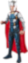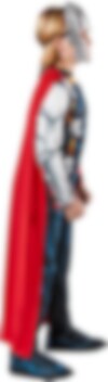 Marvel Avengers' Thor kostumet inkluderer et jumpsuit med tilhørende skoovertræk, en rød kappe og en hovedbeklædning, der forestiller Thors ikoniske hjelm. Dragten er lavet af 100% polyester og fås i en størrelse, der passer til børn mellem 9-10 år (146-152 cm.). Dette er et officielt licenseret Marvel-produkt.
