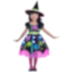 Føl dig som en farverig heks klar til magiske eventyr med denne Neon Spider Witch udklædning til børn. Til kjolen inkluderer en hat og neonfarvede detaljer, der virkelig fanger opmærksomheden. Strømpebukser og sko er ikke inkluderet.