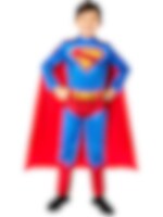 Med dette klassiske Superman-kostume forvandles barnet til selveste Stålmanden. Det ikoniske logo, de farverige tryk og den røde kappe skaber et heroisk look, der er perfekt til udklædning, Halloween eller fantasifulde superhelteeventyr.