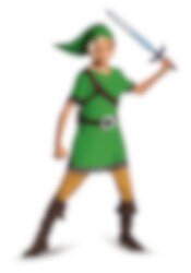 Zelda Link Kostume inkluderer en grøn tunika med matchende brystbælte, et taljebælte med taske og en grøn hat. Kostumet fås i én størrelse og er velegnet til børn mellem 10-12 år. Dragten er lavet af 100% polyester. Bukser, sko og Master Sword er ikke inkluderet. Dette er et officielt licenseret produkt.